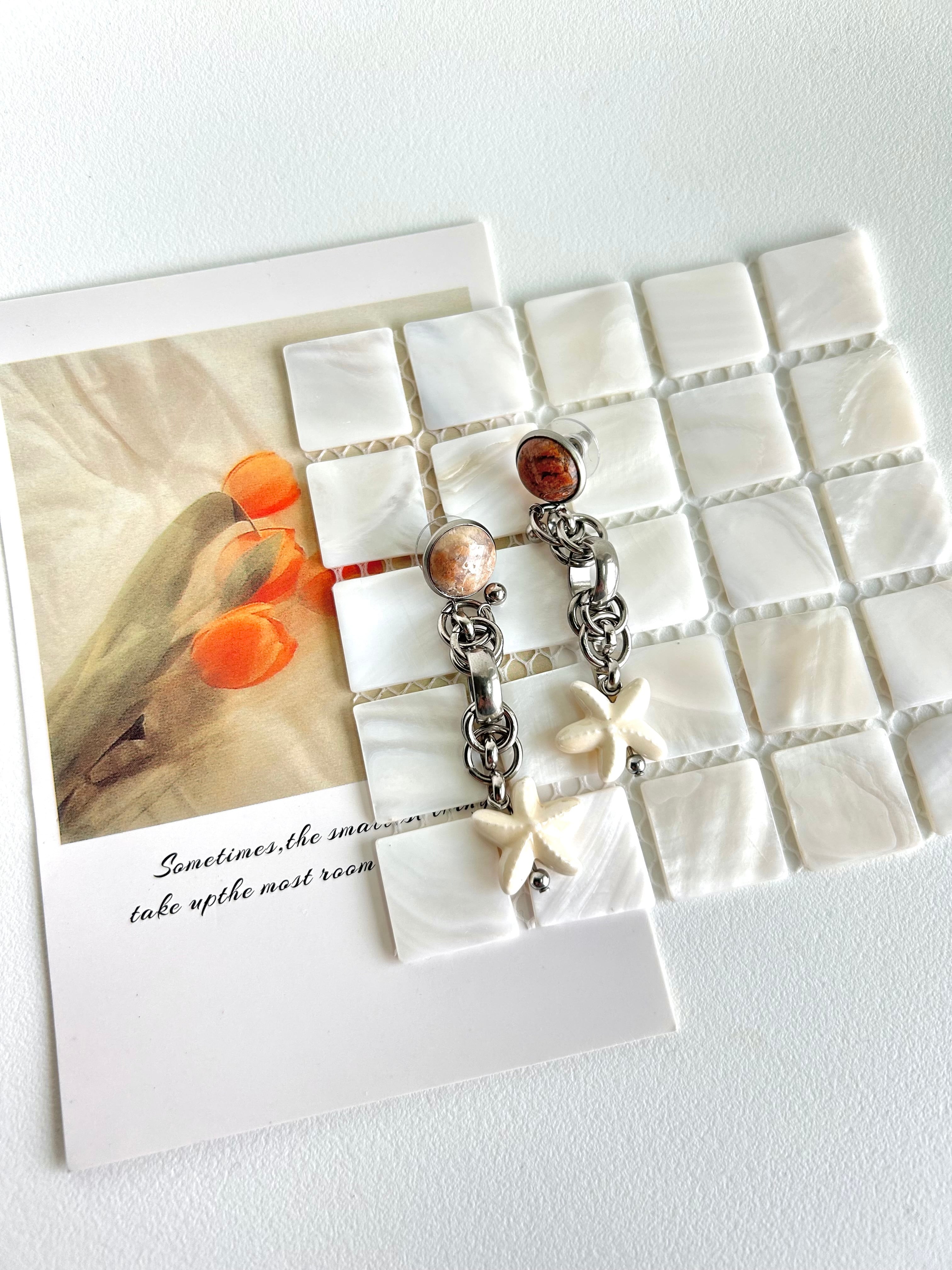 桜瑪瑙と陶器ビーズのピアスイヤリング