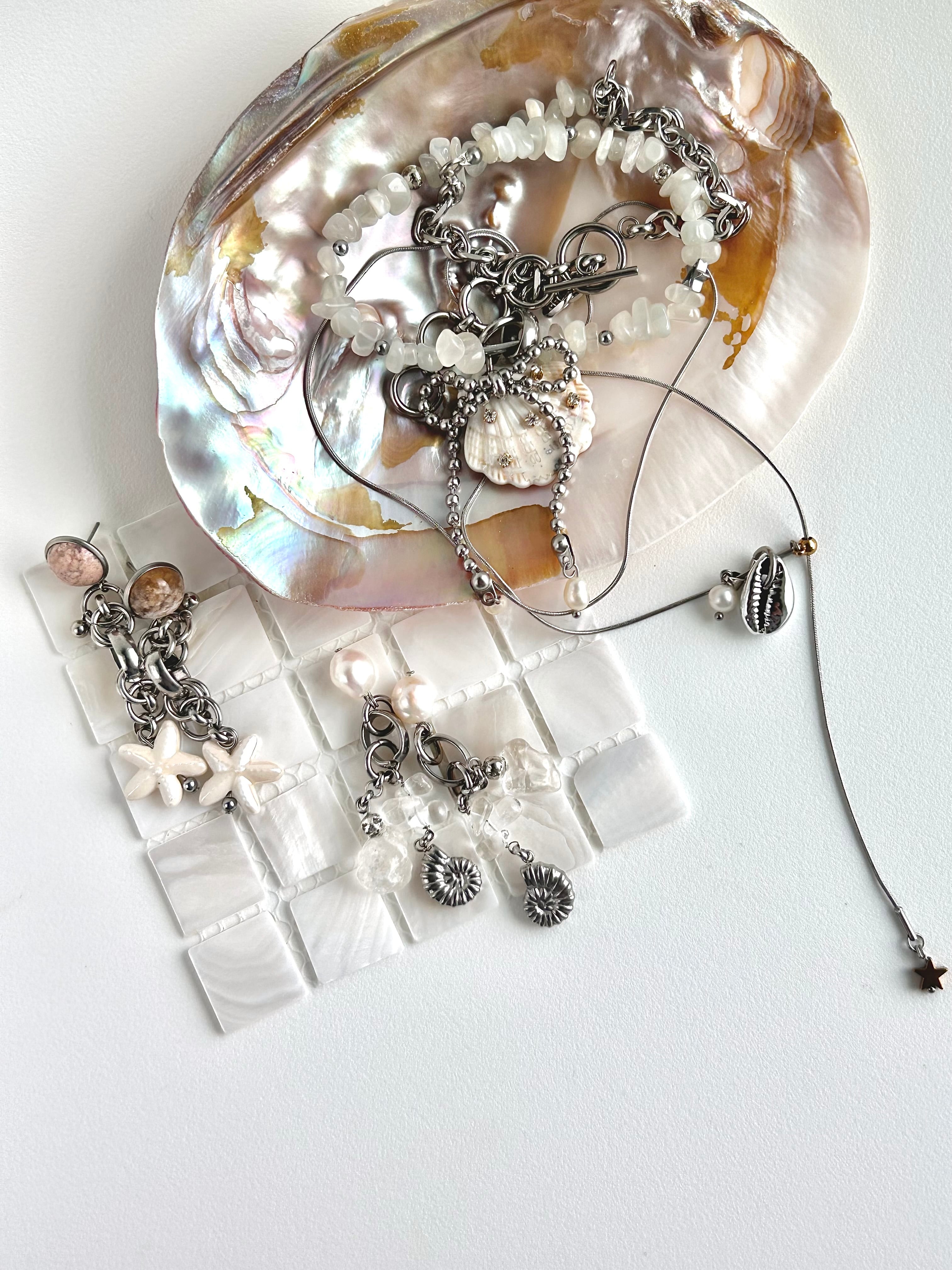 天然石 クリスタルクォーツ 淡水パール ラヴァストーン ステンレスパーツ