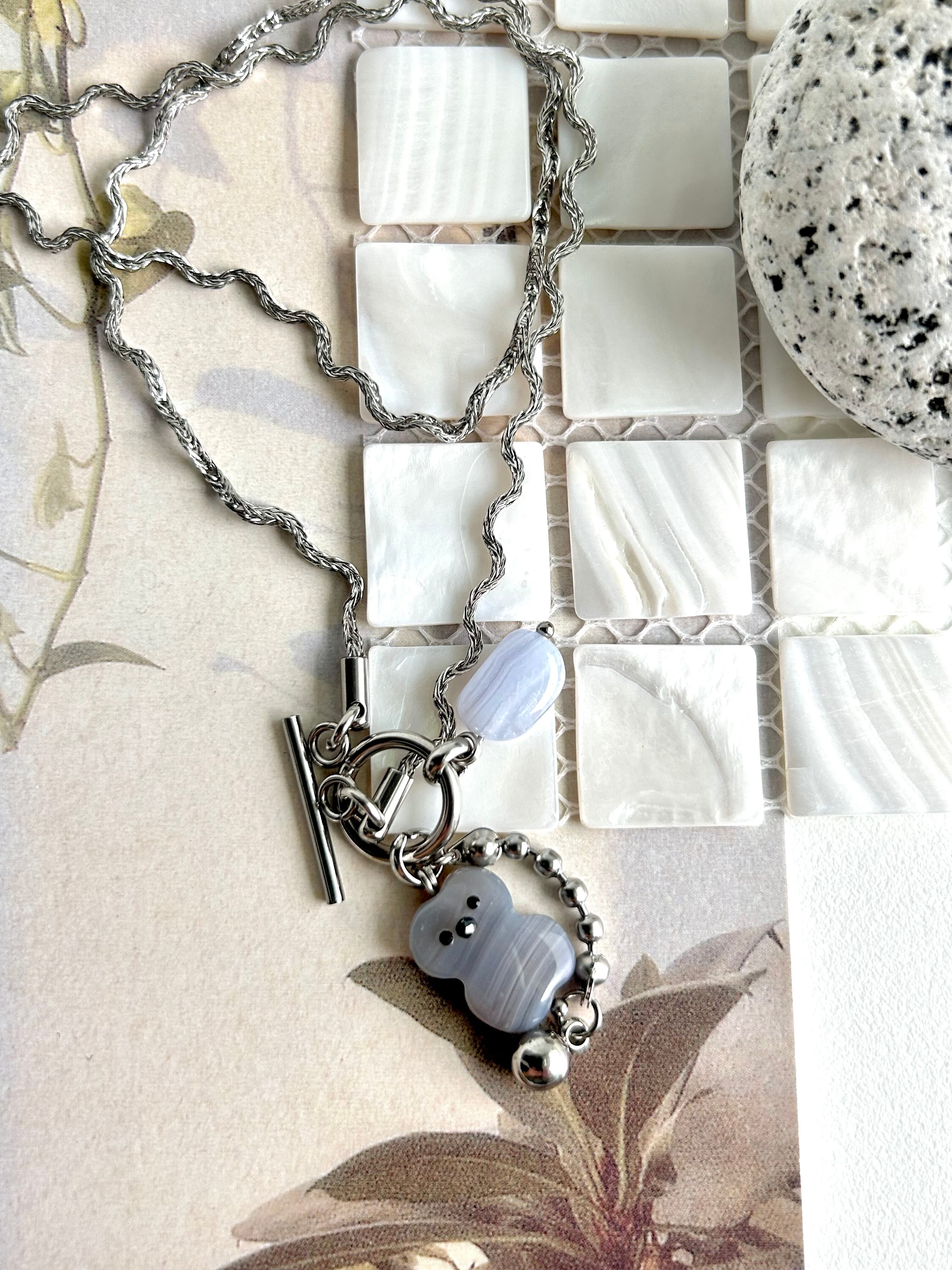 ゆらゆら揺れるグレーアゲートのゆるカワbearネックレス