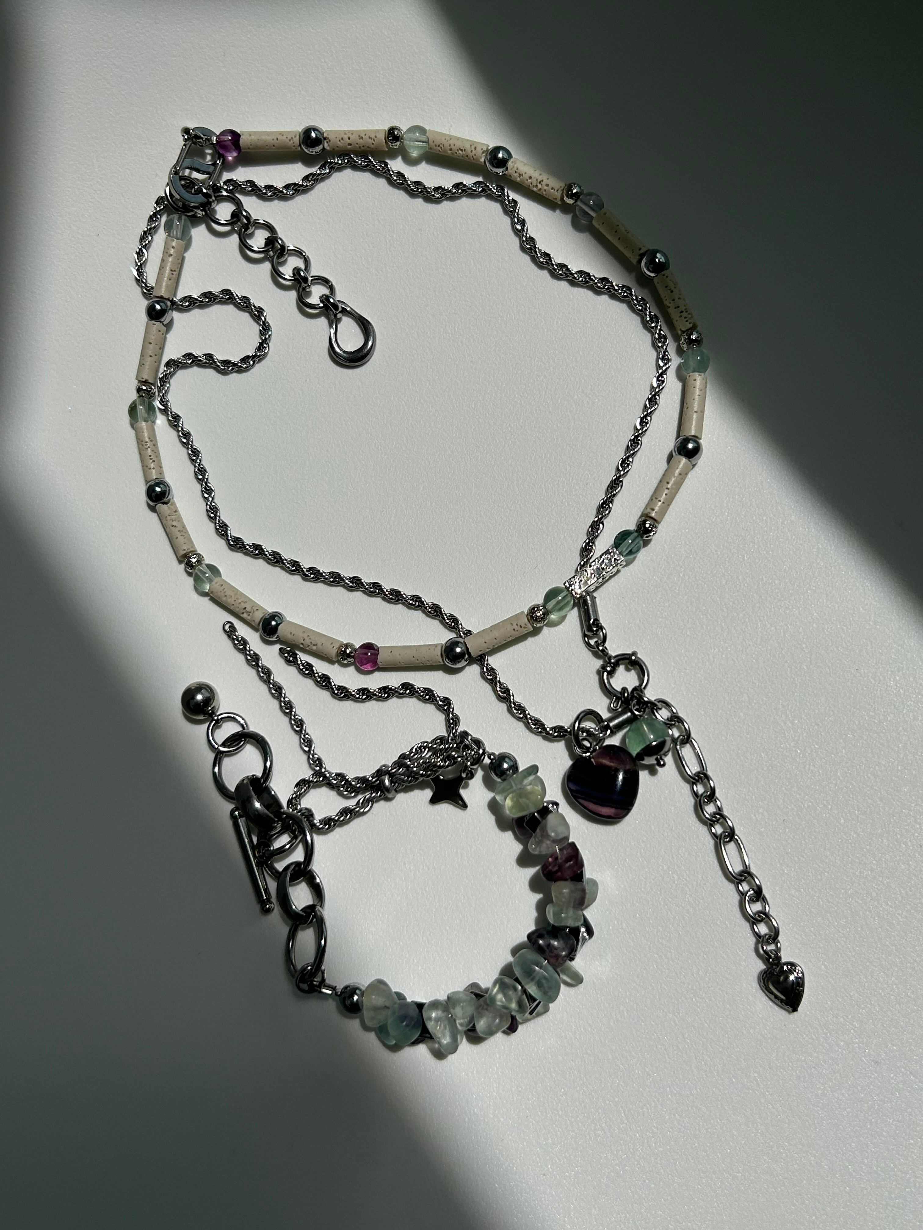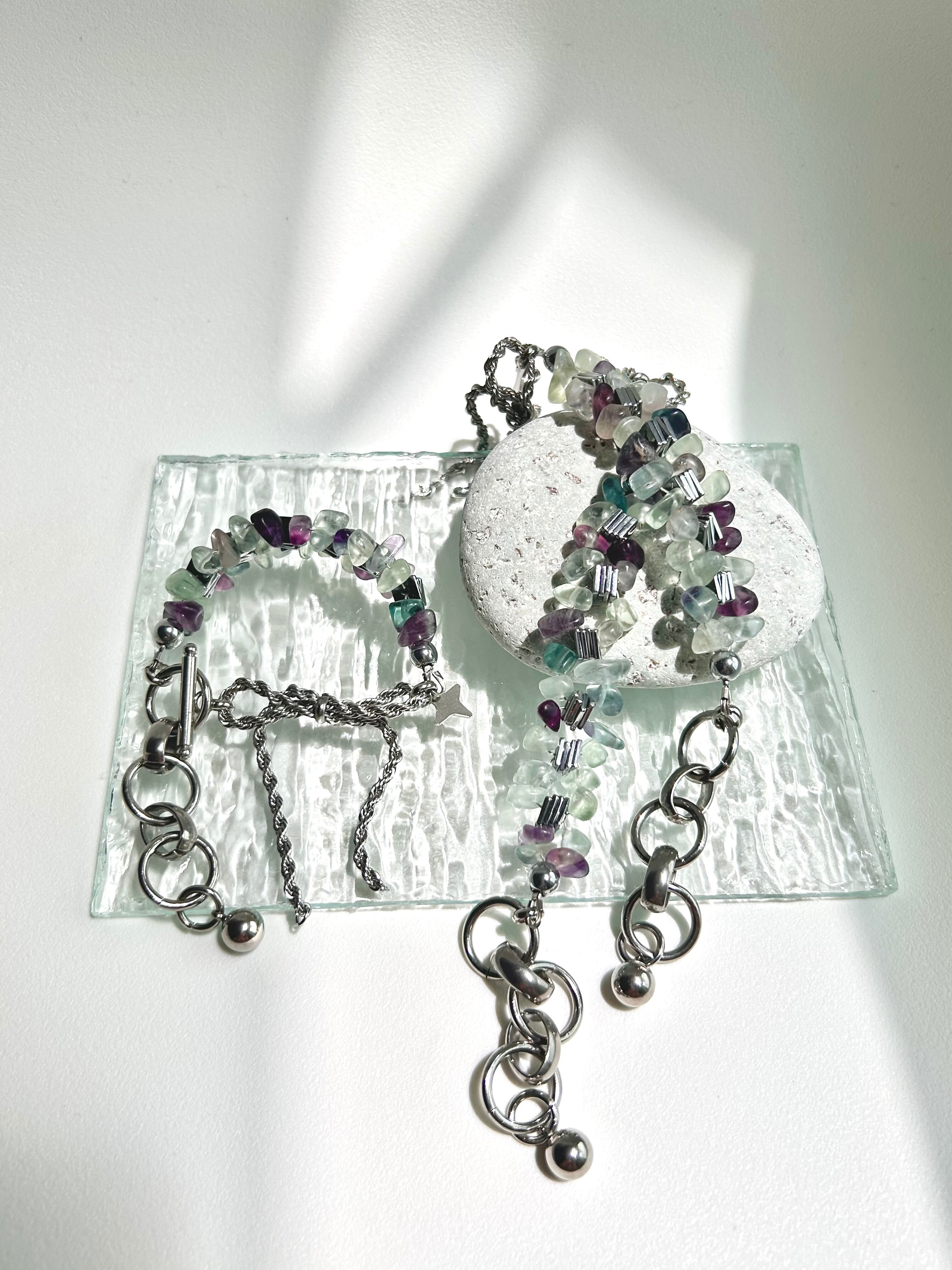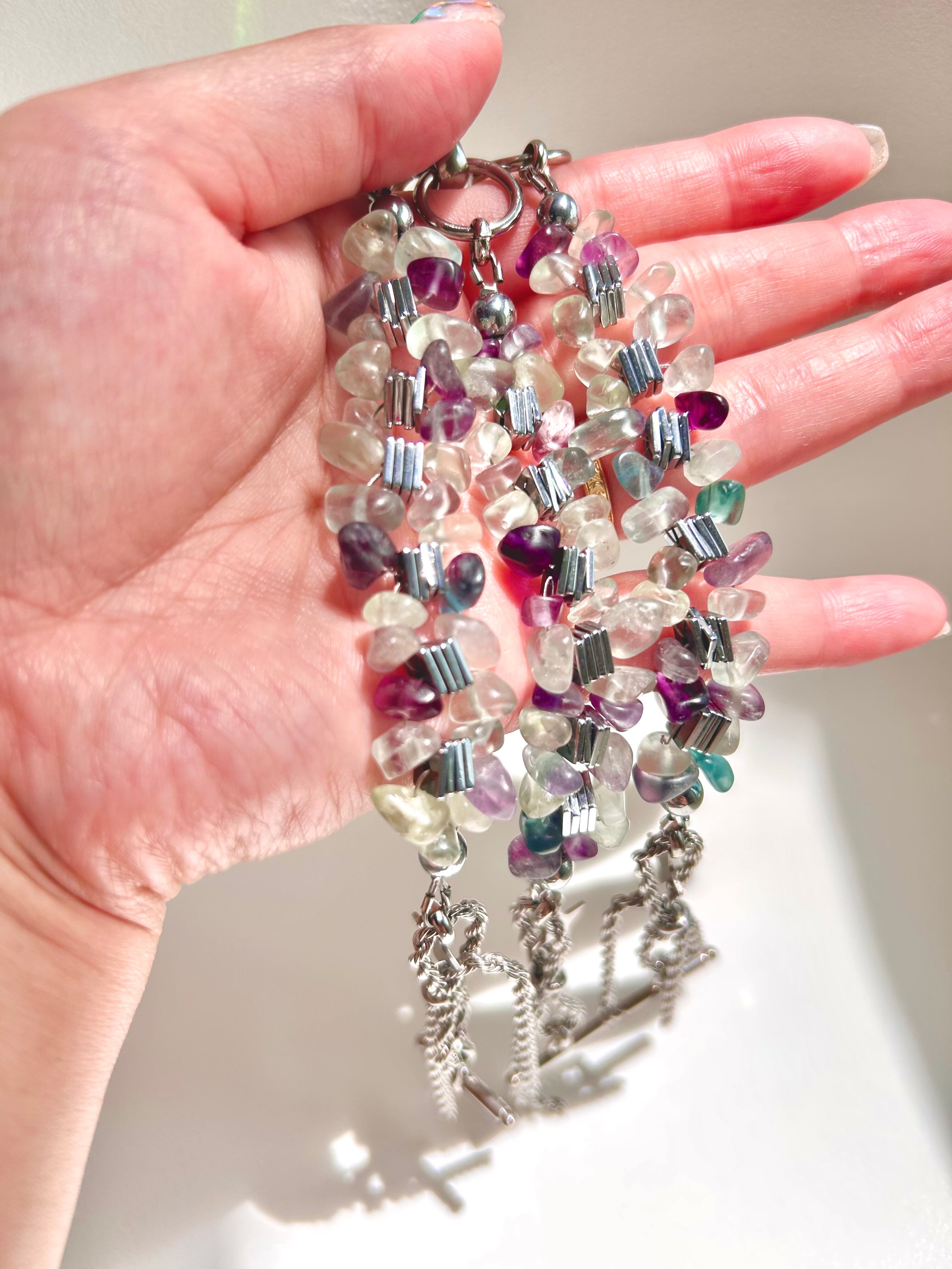 フローライトチップとヘマタイトのブレスレット