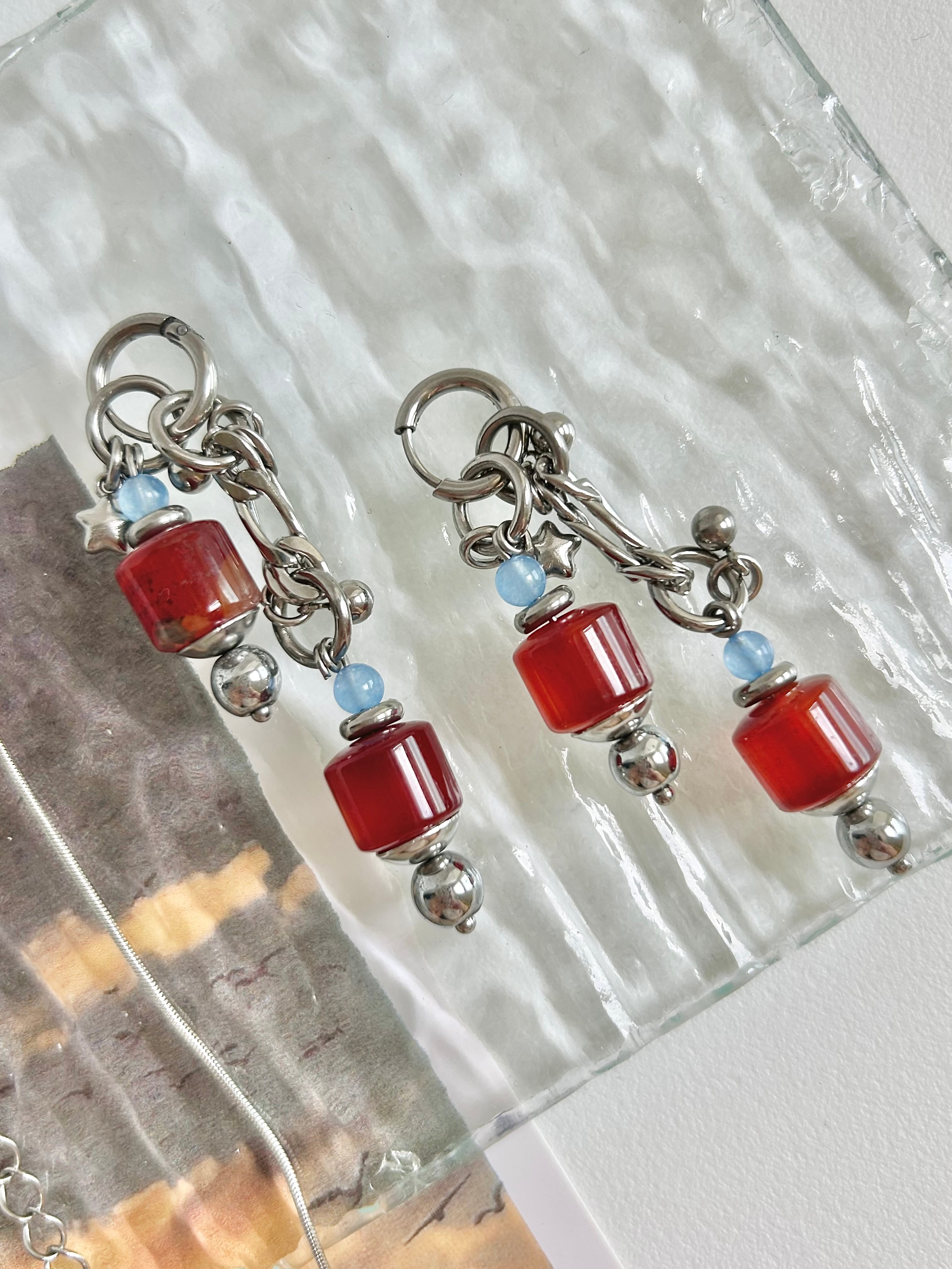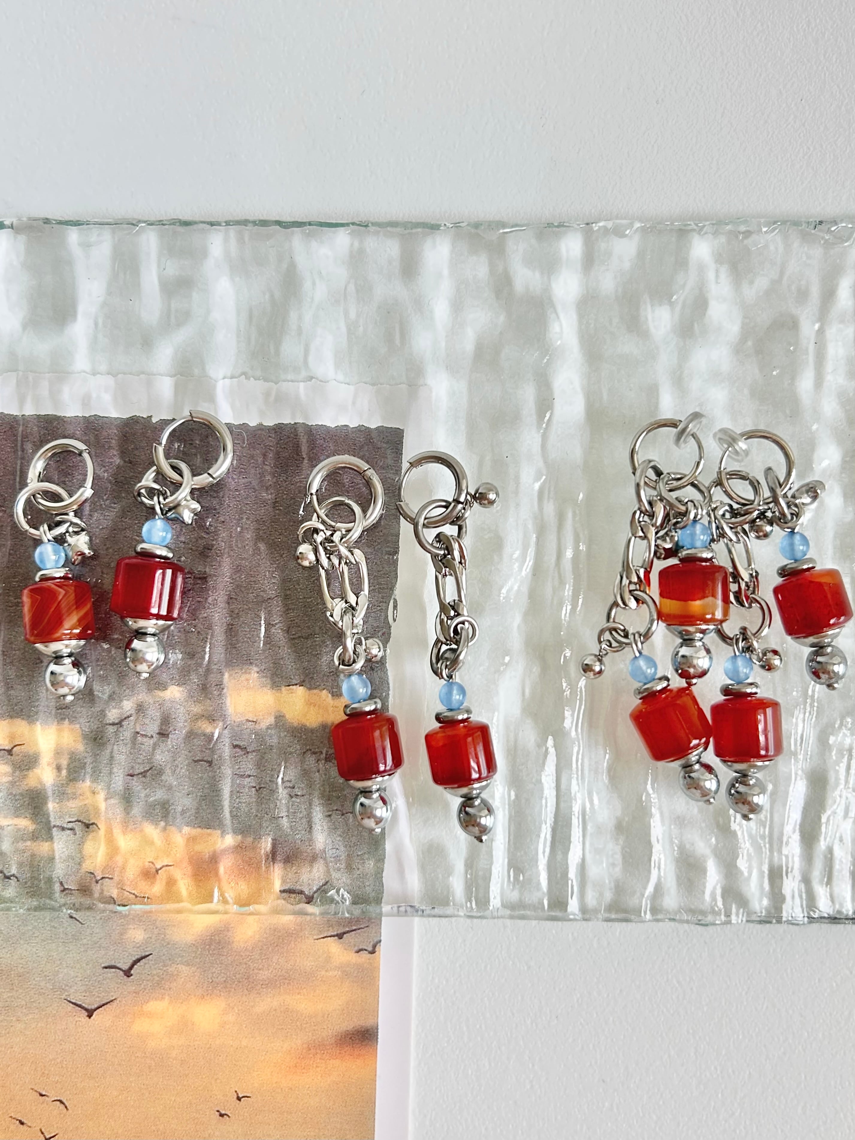 カーネリアンとカラージェードのビーズが印象的なピアス イヤリング