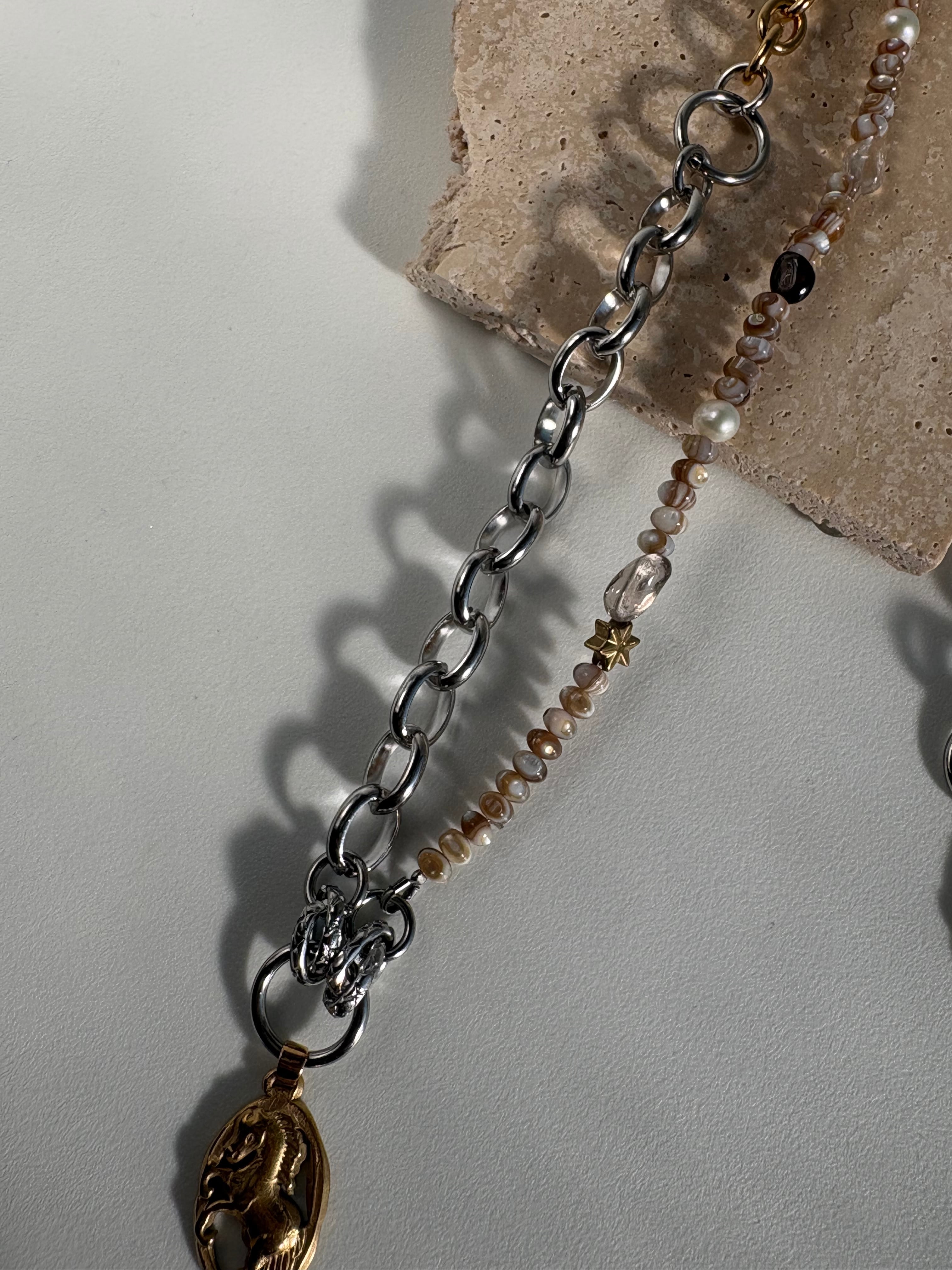 淡水パールヘマタイトをちりばめたネックレス