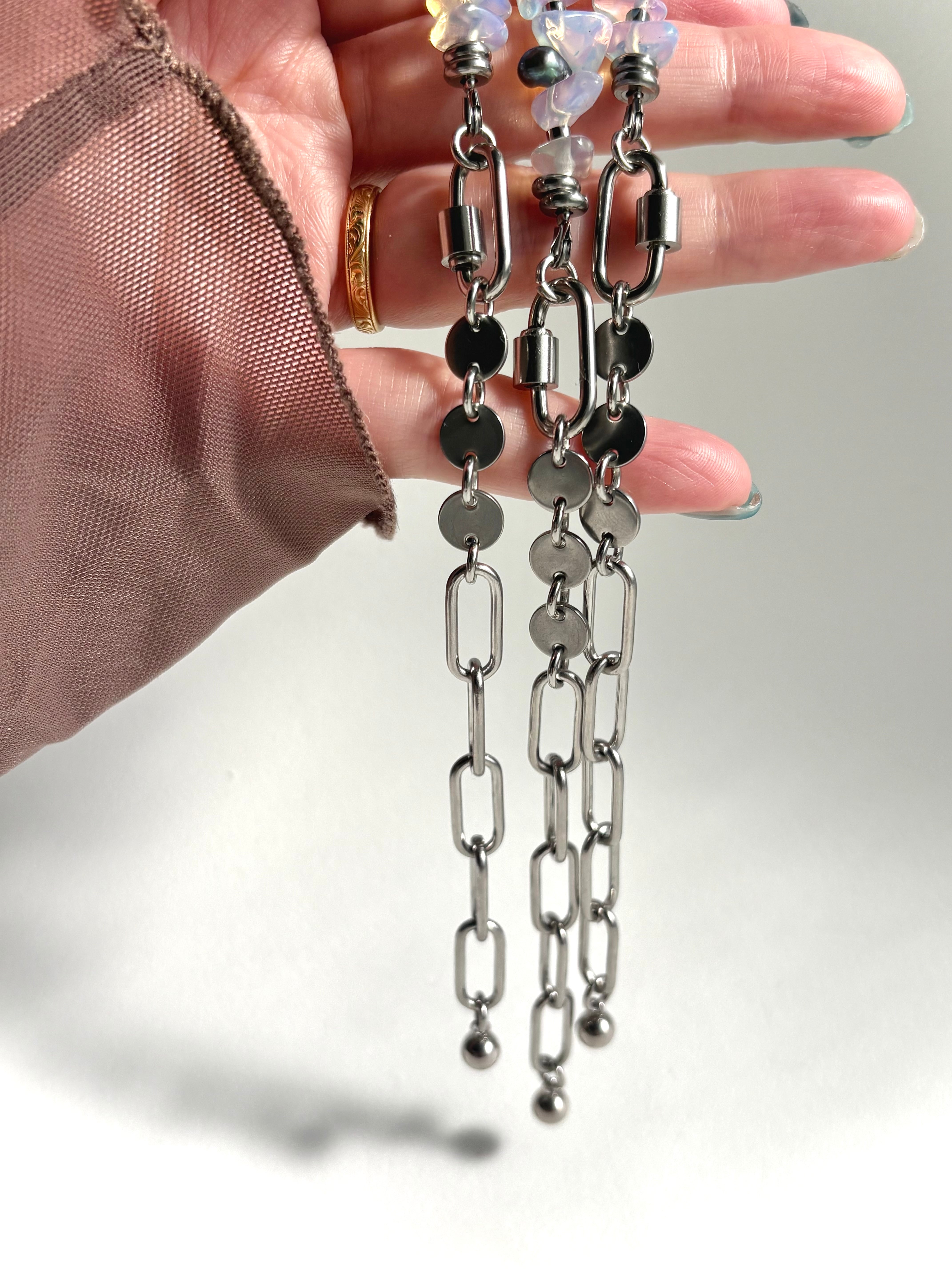 シンセティックオパール×淡水パールのブレスレット
