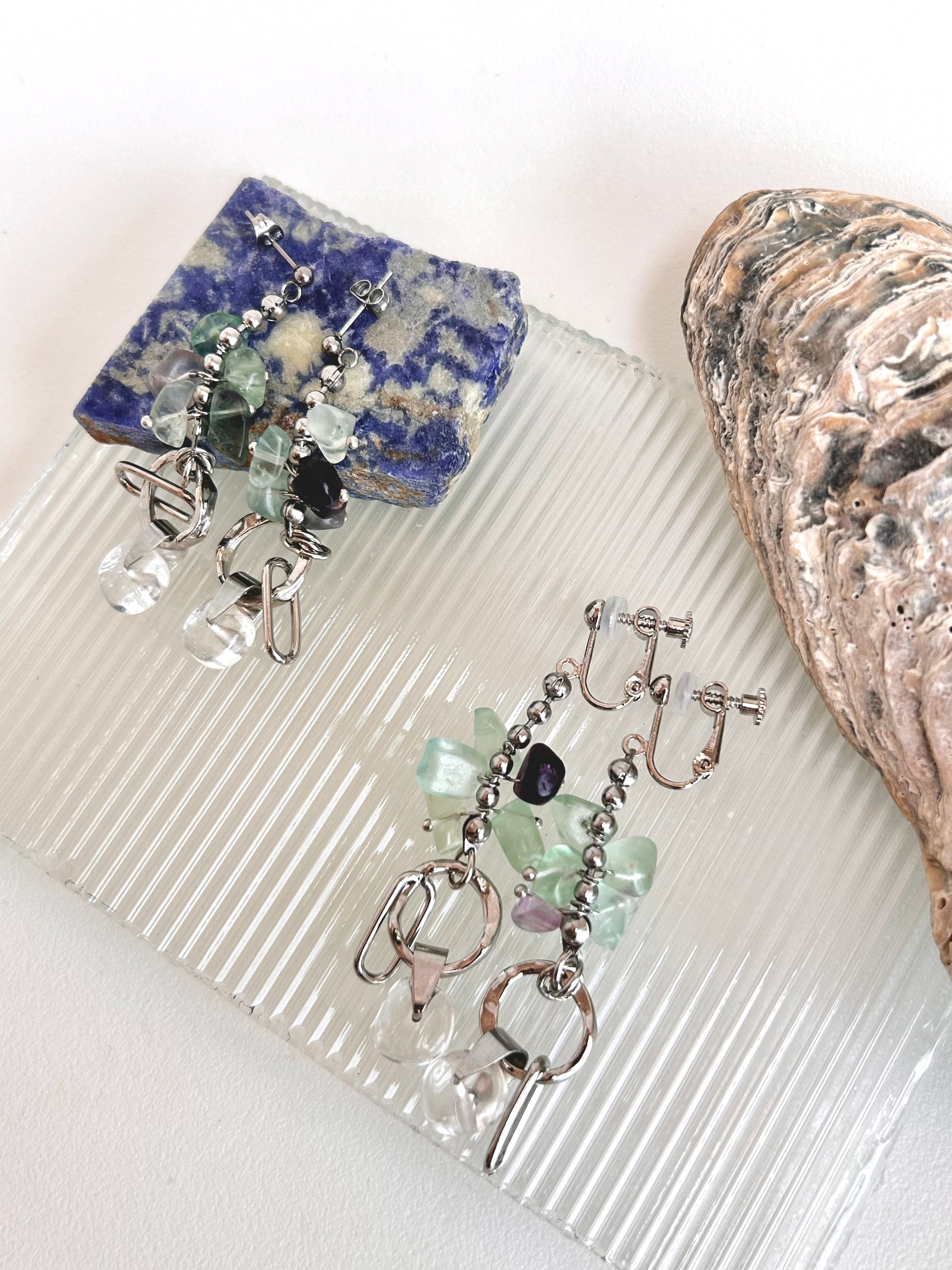 フローライトとクリスタルクォーツのピアス イヤリング