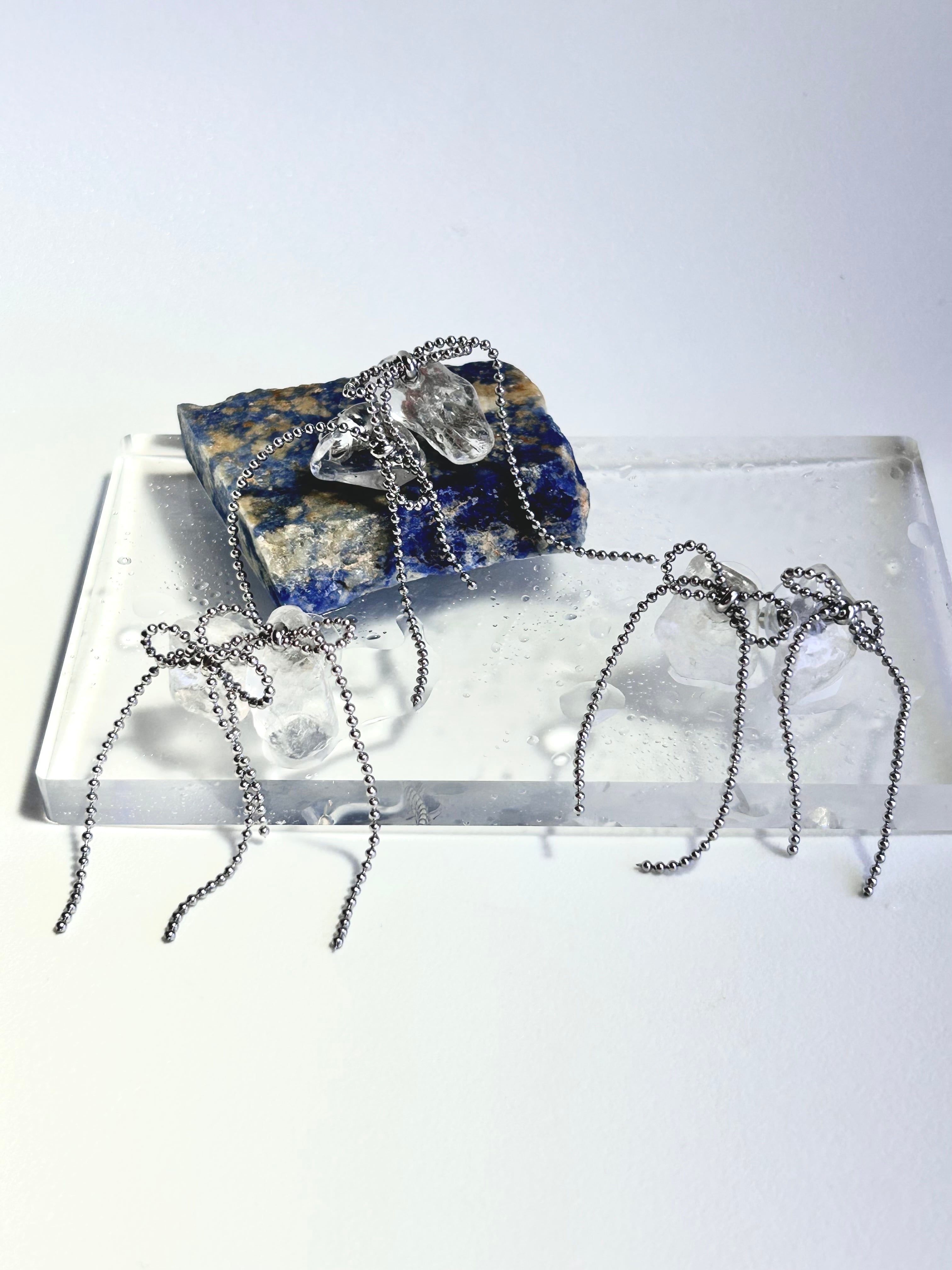 華奢なボールチェーンで小さなリボンをかけました