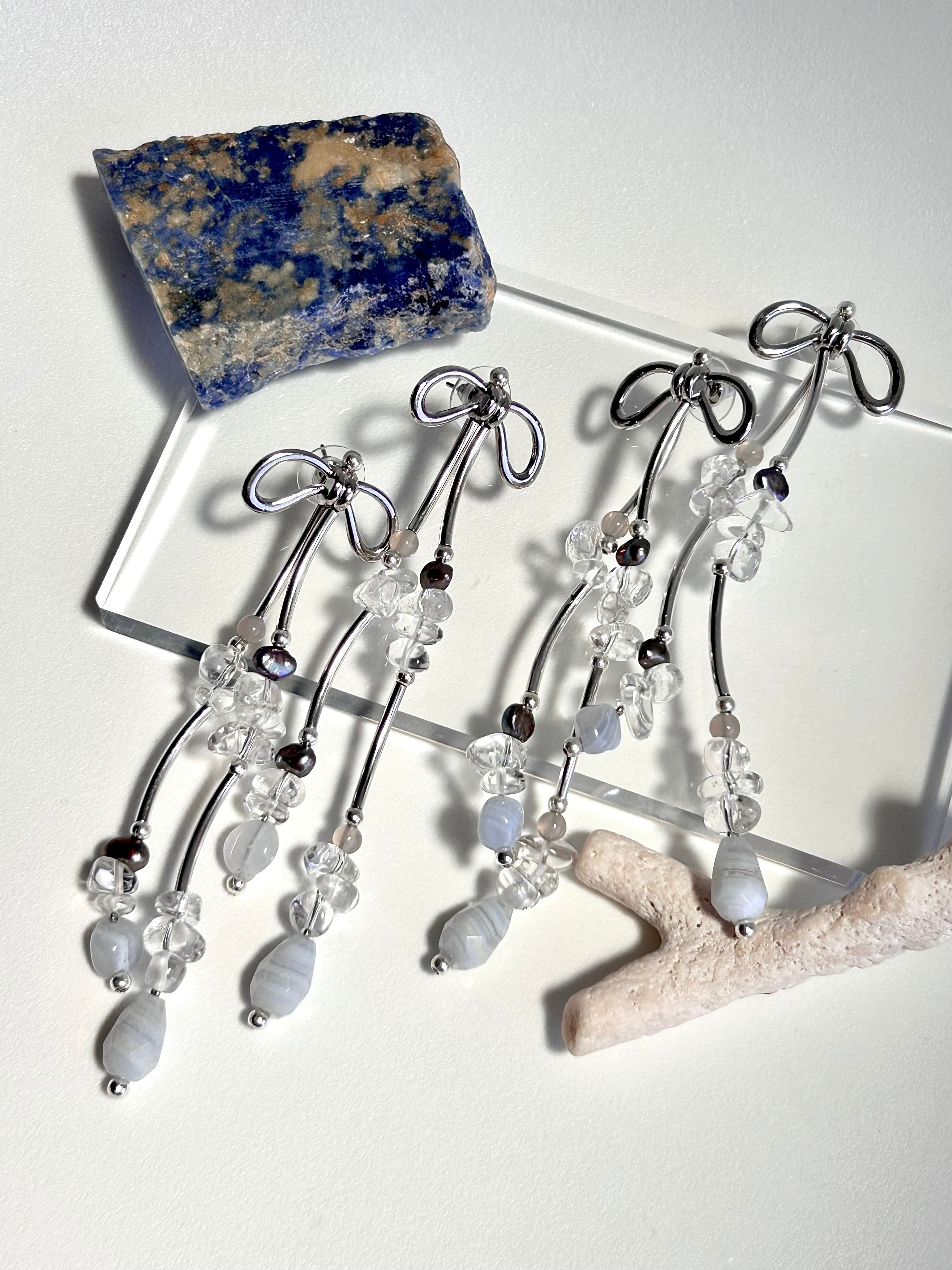 小さなかけらみたいな石を集めてリボンピアス イヤリングにしました