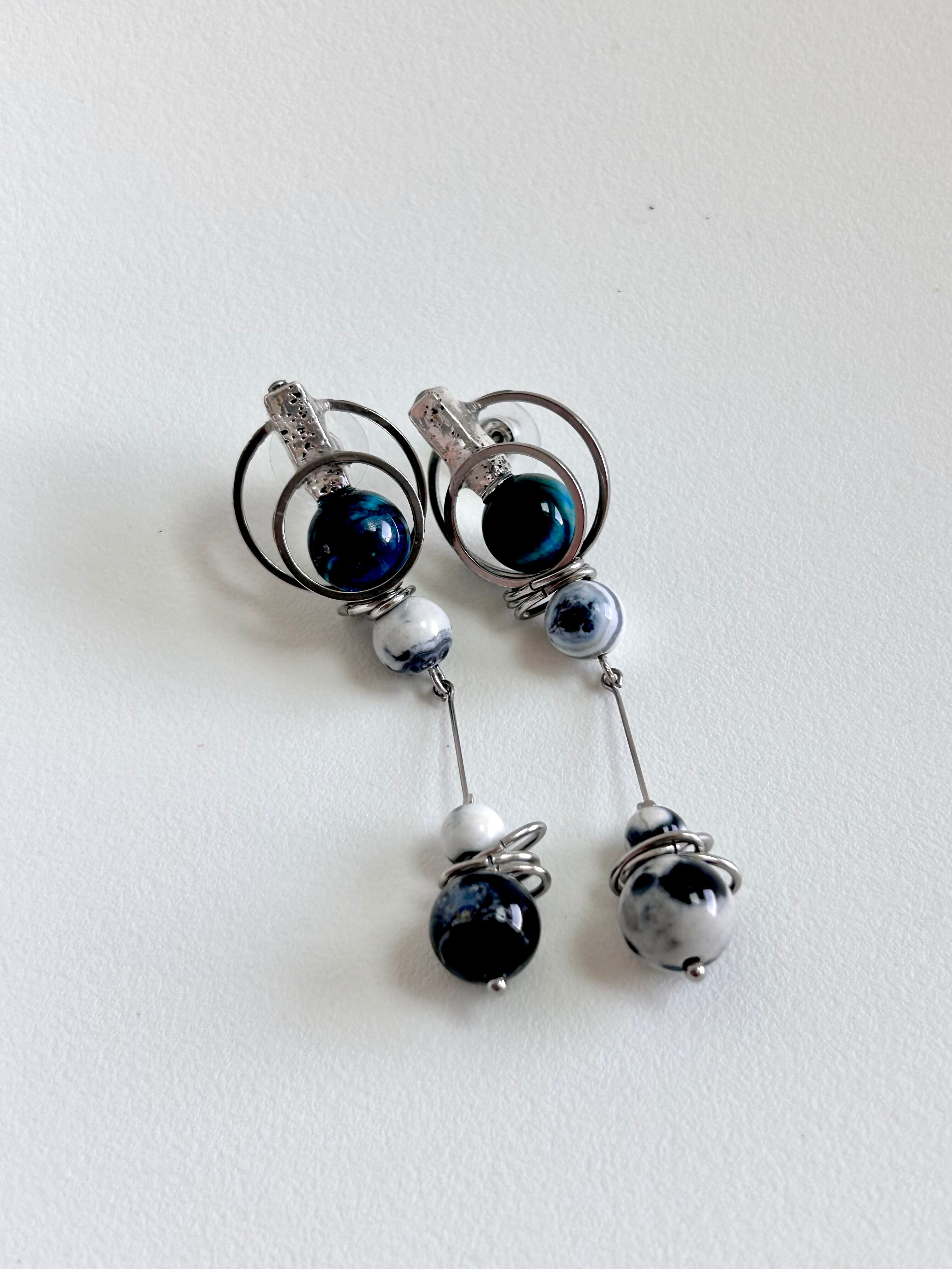 ブルータイガーアイとファイヤーアゲートのピアス イヤリング