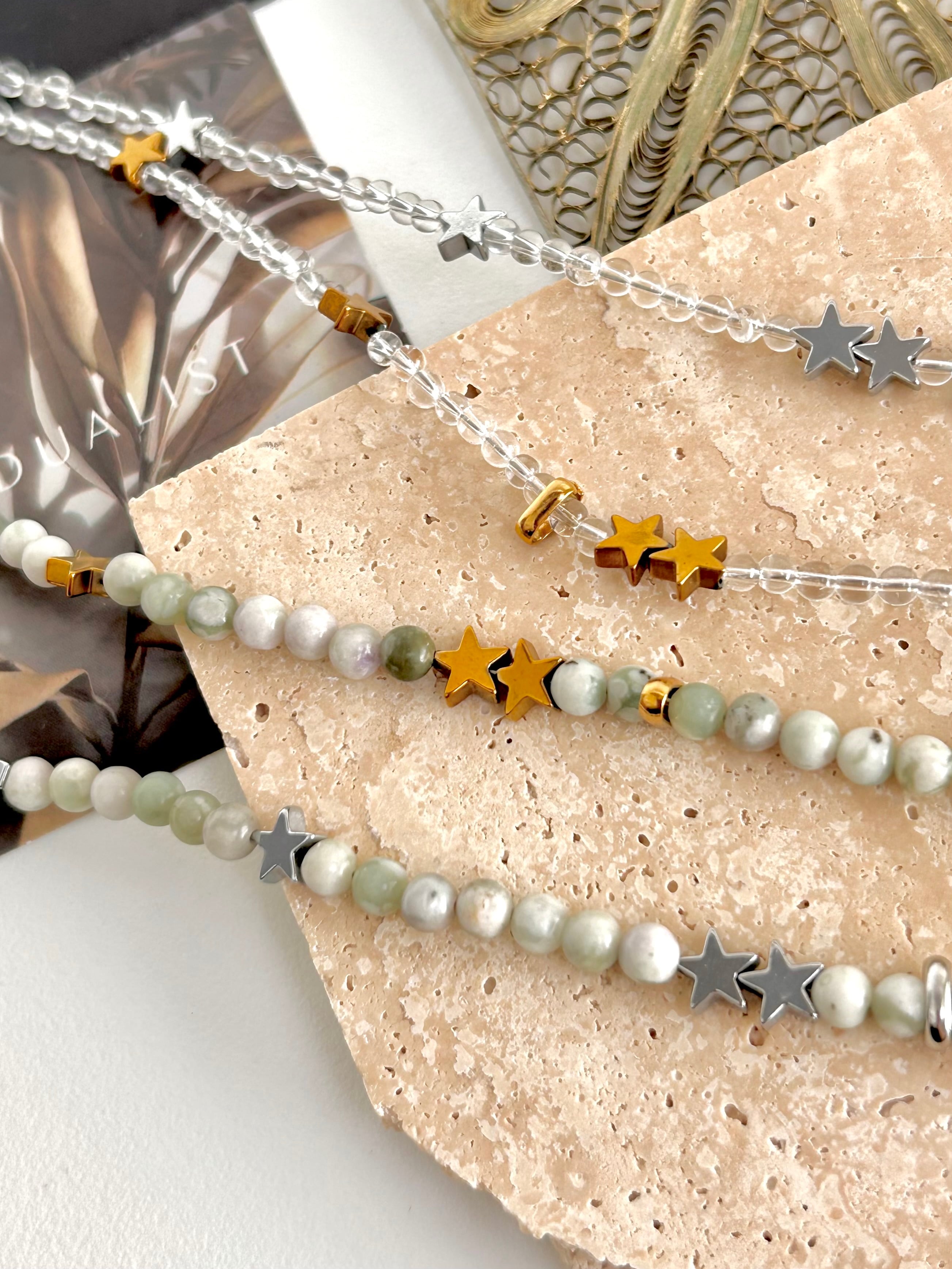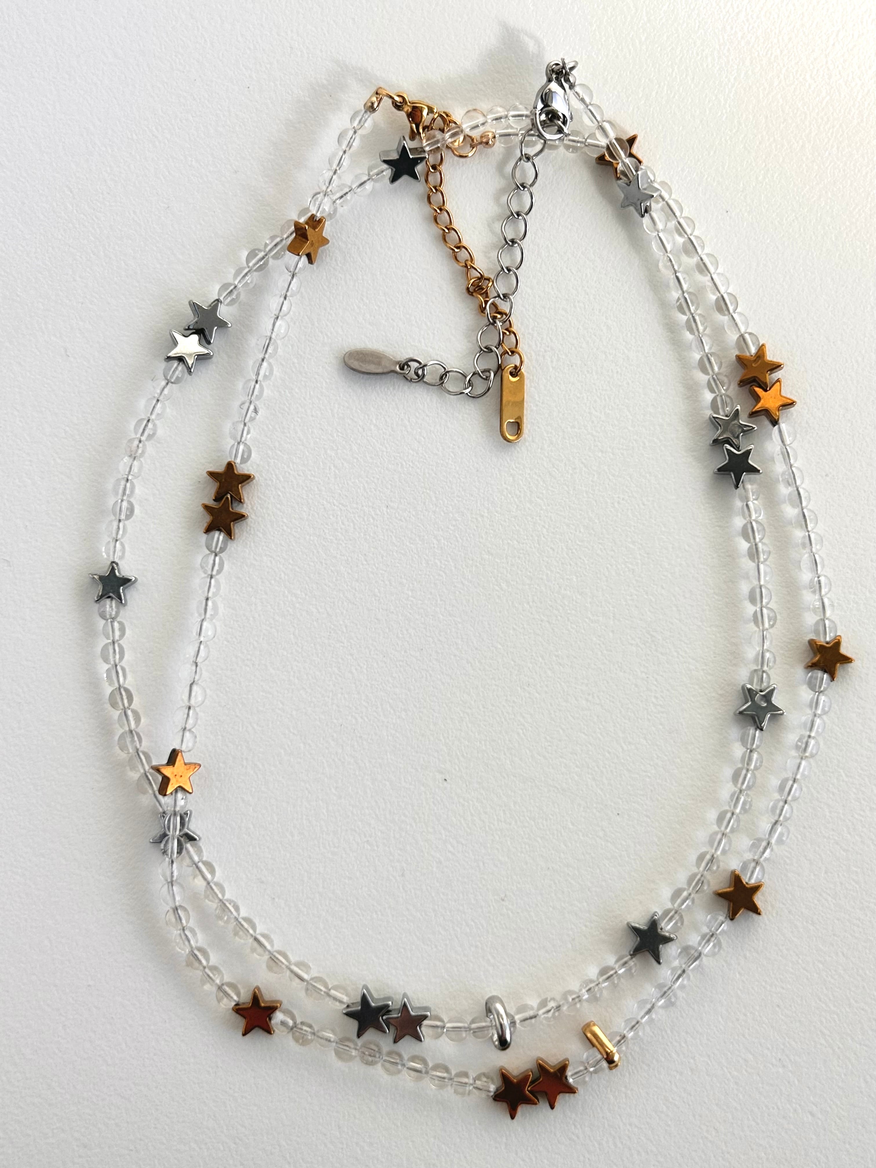 首にそうタイプの短めネックレスなのでお手持ちのネックレスとも重ね付けしやすいですよ